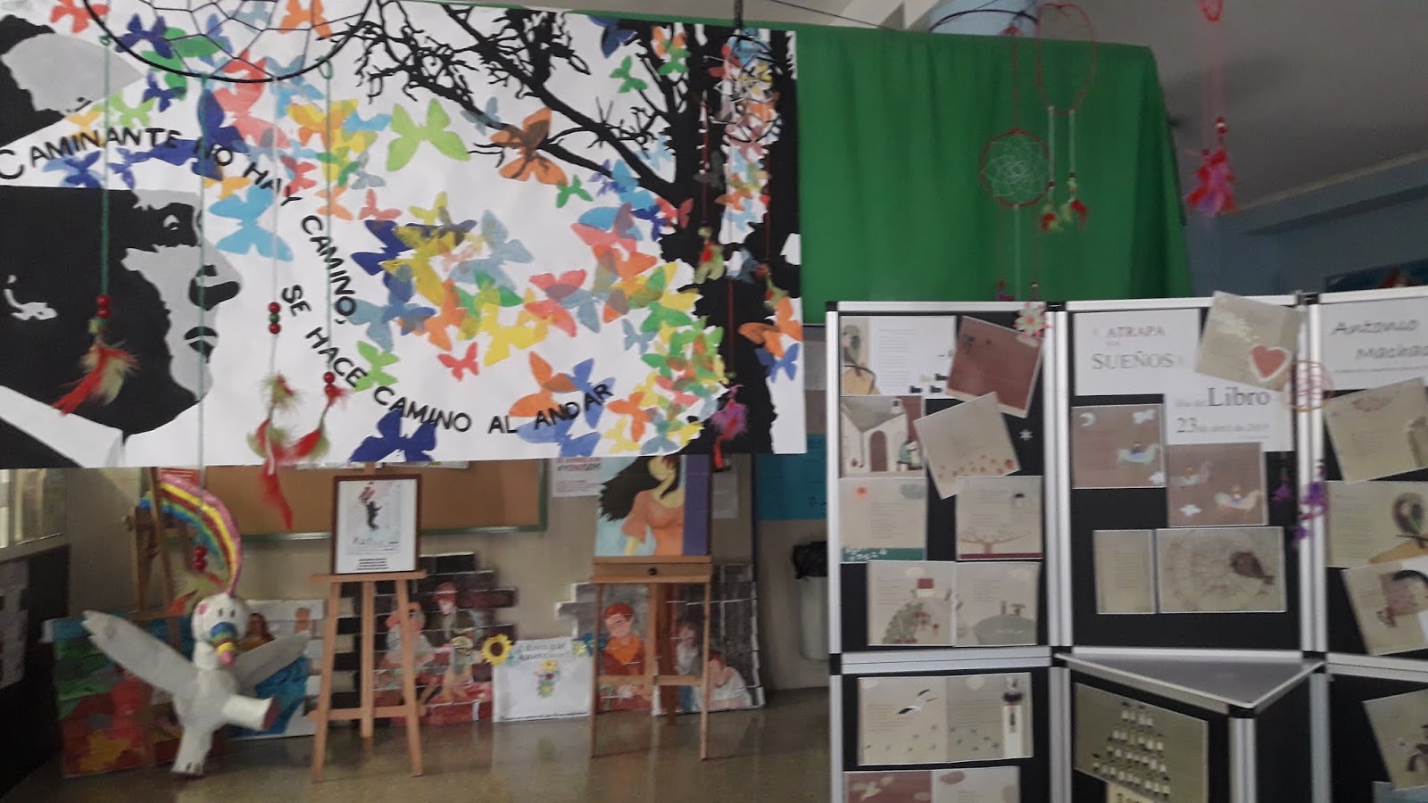 Este año, que se conmemora el 80 aniversario de la muerte de Antonio Machado, hemos querido acercarnos un poco a este gran poeta sevillano, el más joven de la Generación del 98. Comenzamos creando el cartel que decorará nuestro vestíbulo de entrada durante estos días, con una imagen pintada de Machado, de la que sale uno de sus versos más conocidos: "Caminante no hay camino, se hace camino al andar". El alumnado de los cursos superiores ha participado en una gran Gimkana de Coeducación, donde han conocido muy de cerca, a la artista mexicana, Frida Khalo y otras mujeres, con un papel muy importante en nuestra historia. Para ello, tuvieron que hacer equipos y resolver las cuestiones que se le plantearon, mientras buscaban las respuestas en los libros de coeducación seleccionados. En otra de las actividades, realizaron bordados de la imagen de Frida y aprovecharon para conocer más detalles de su vida y su obra. Mientras, el alumnado de 1º y 2º de ESO, han leído a sus compañeros del centro y a los del colegio Fray Bartolomé de las Casas, al que acudieron, otro de los días de esta semana. También aprovecharon para leer, tanto poemas de Antonio Machado como textos de "El Principito", en francés. Desde el programa Comunica, también han estado realizando lecturas de nuestro poeta sevillano. La última de las actividades, ha sido la creación de libros Pop up, decorados con poemas de Antonio Machado y con imágenes relacionados con ellos, que sobresalían para ser como los auténticos Pop up. Han quedado tan bonitos que los hemos colgado de nuestro vestíbulo, para que todos podamos admirarlos.